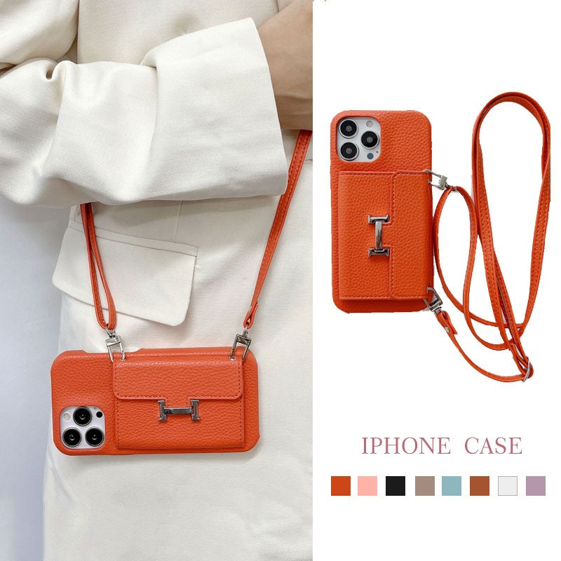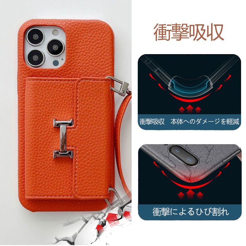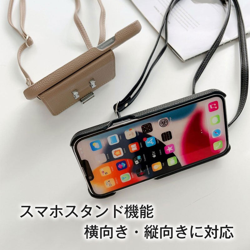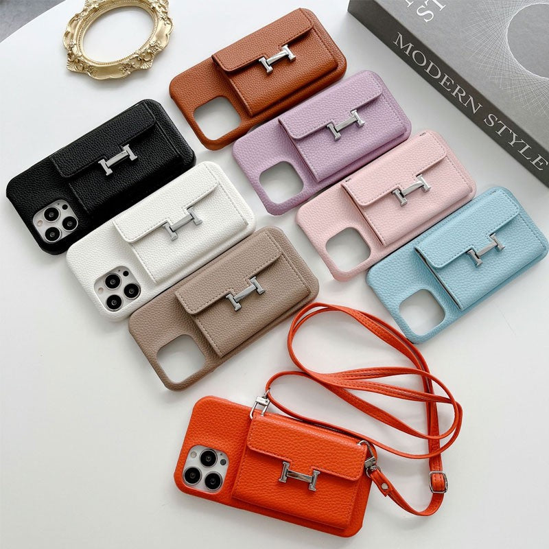 ライチ模様レザー製スマホケース&H型留め具付きカードケース