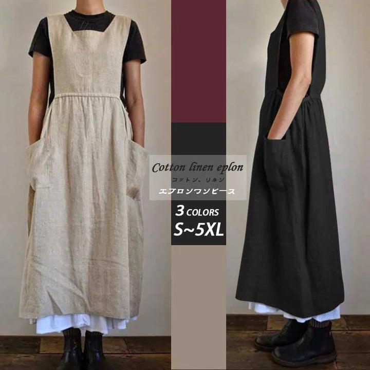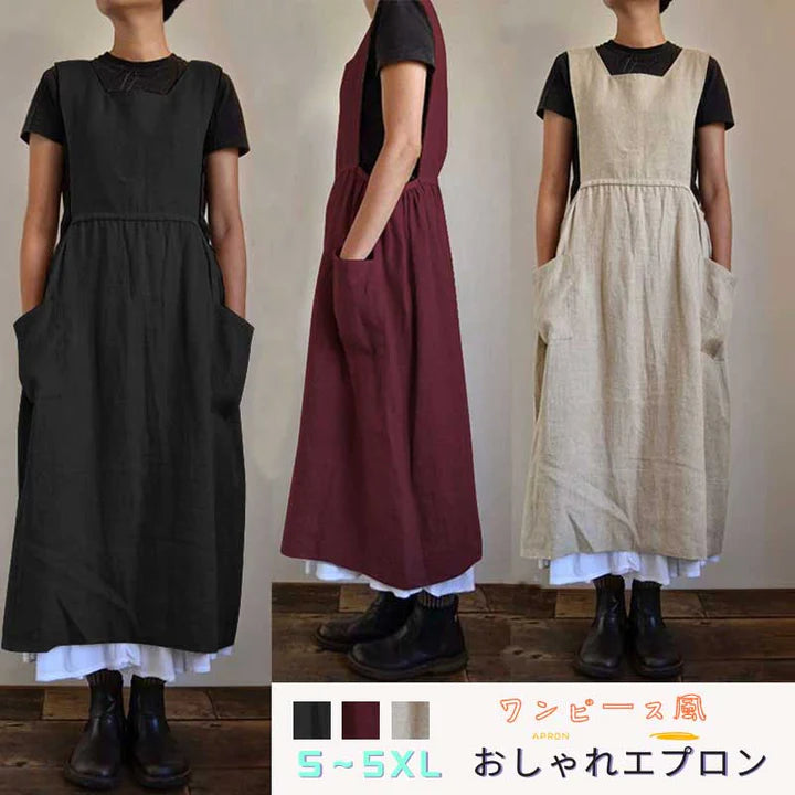 北欧風 ンプル無地 ハイウエスト ロング丈 エプロン エプロン風ワンピース