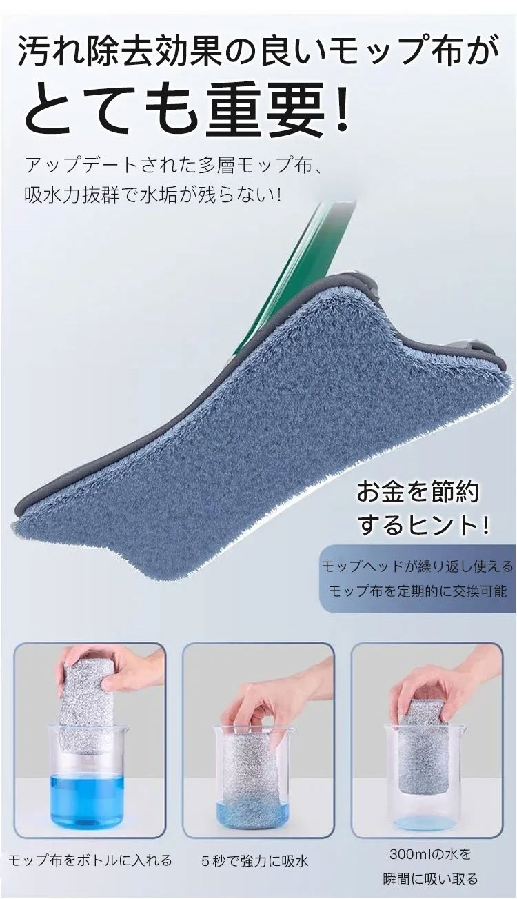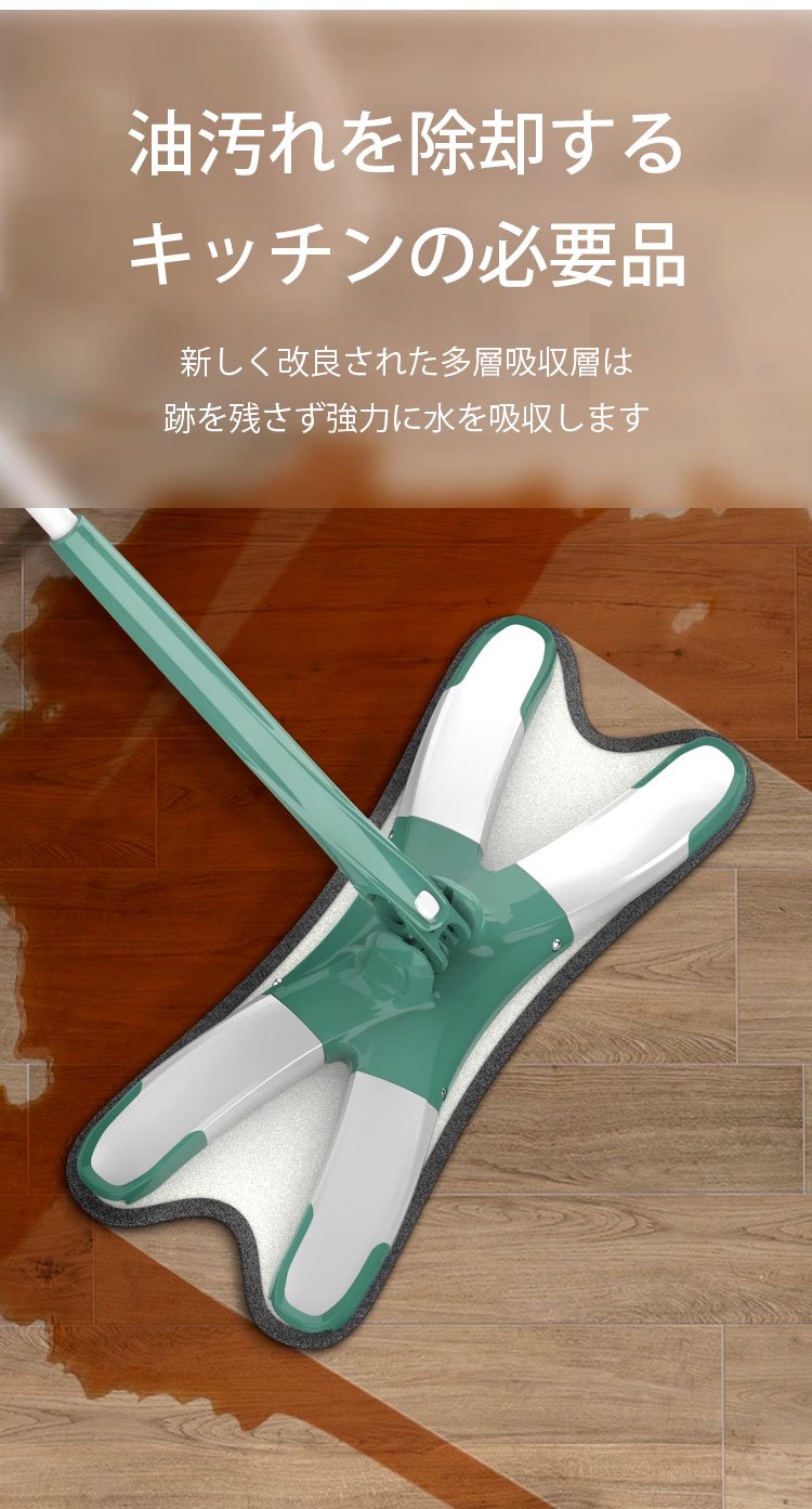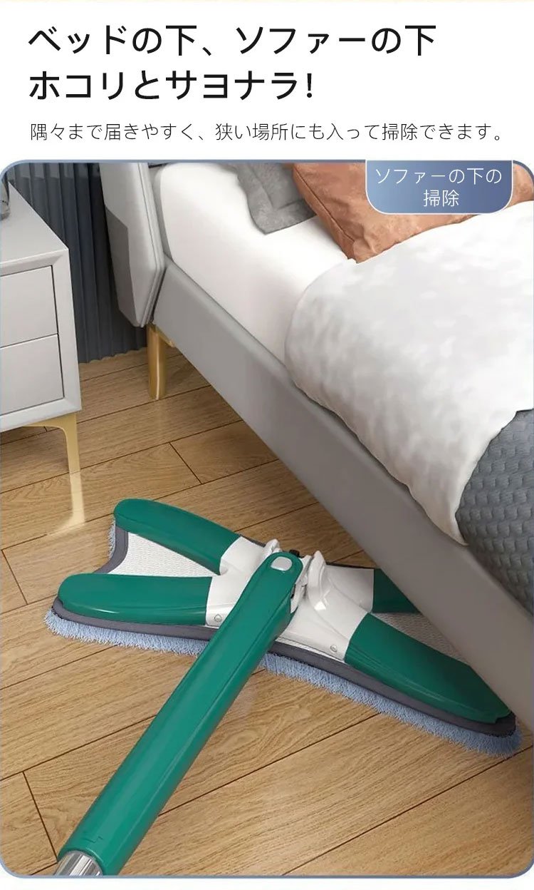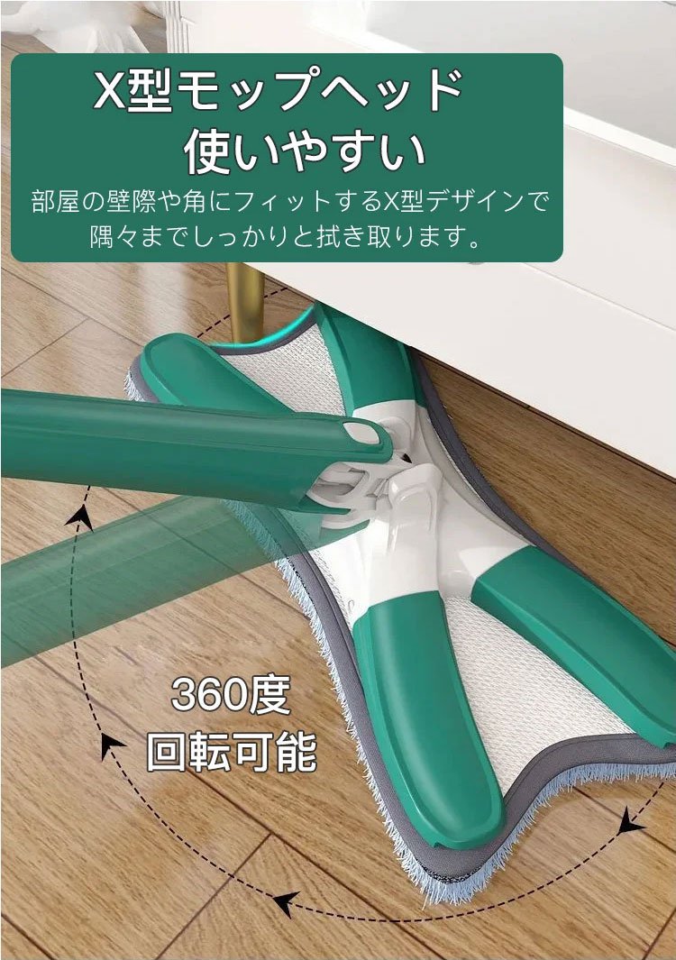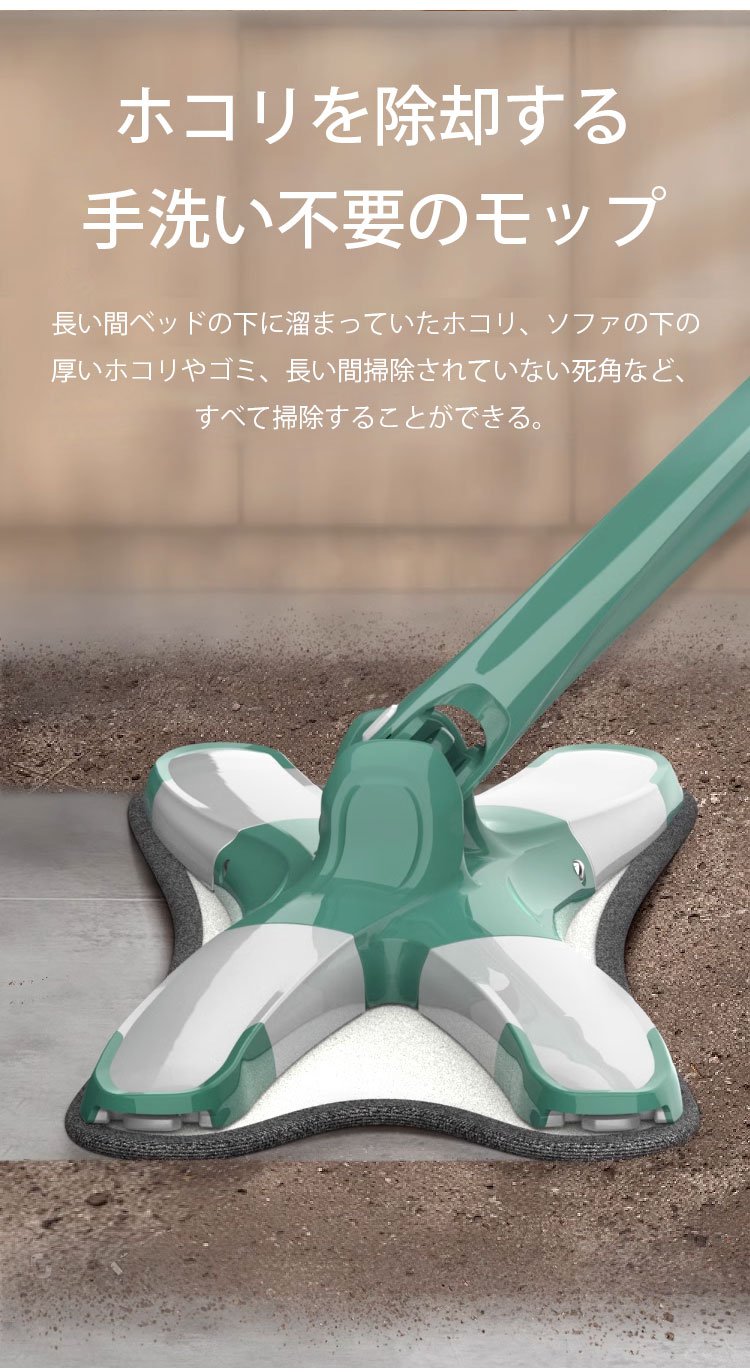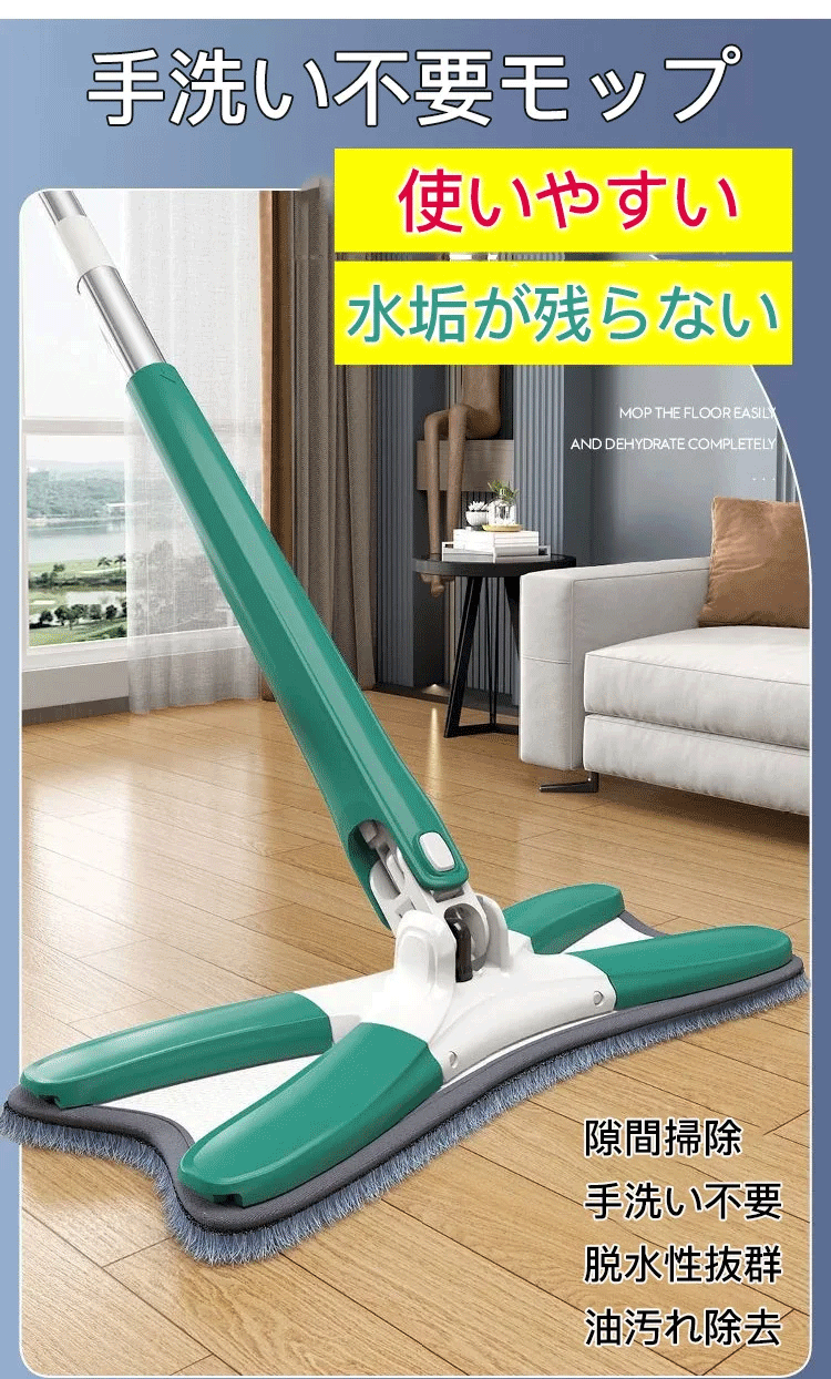 【手洗い不要】フロアモップ-新型、手洗い不要、死角なし洗浄