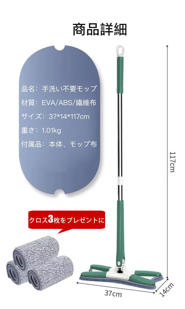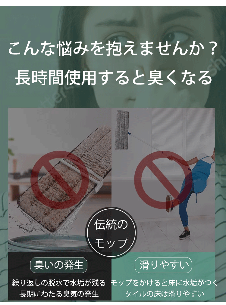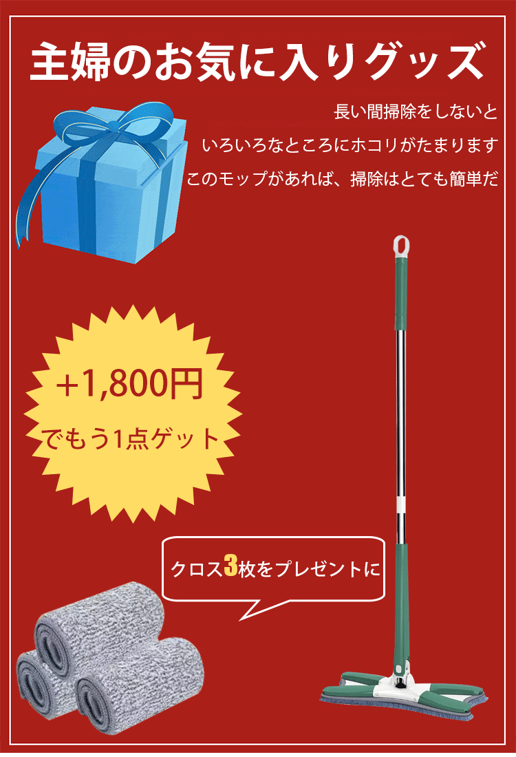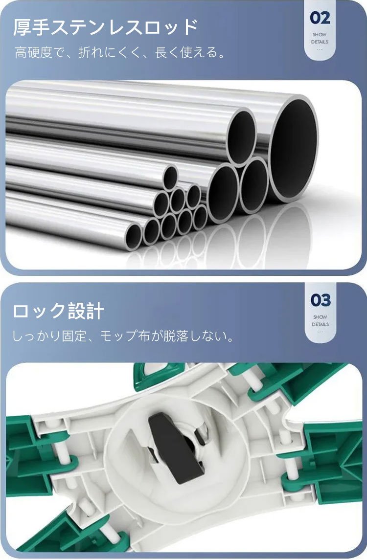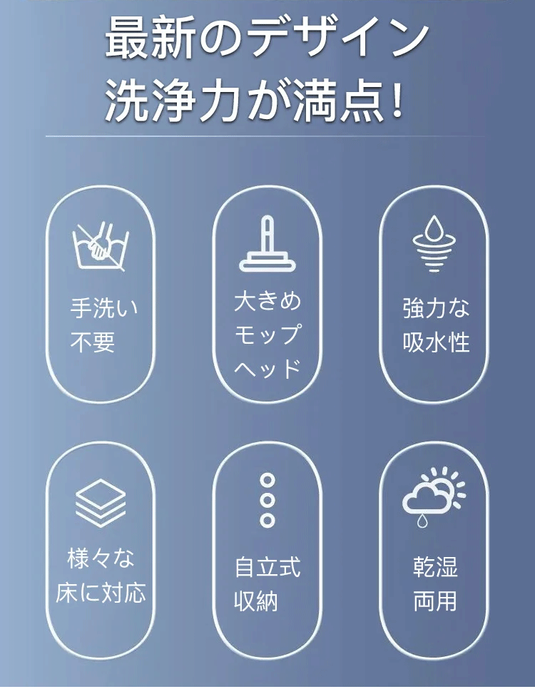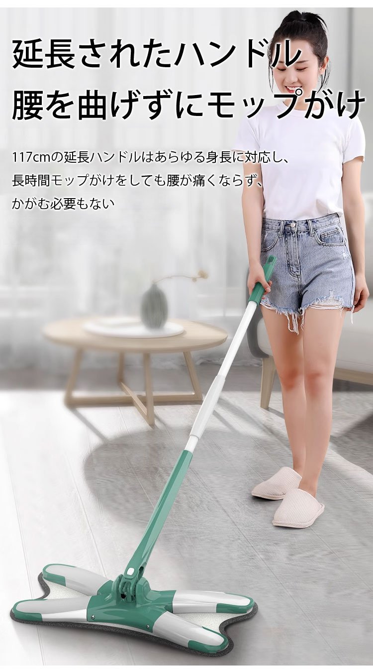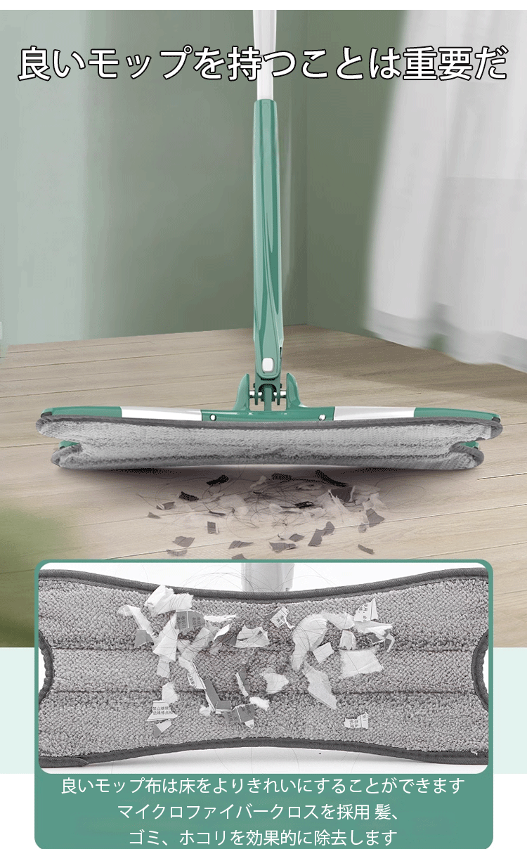 【手洗い不要】フロアモップ-新型、手洗い不要、死角なし洗浄
