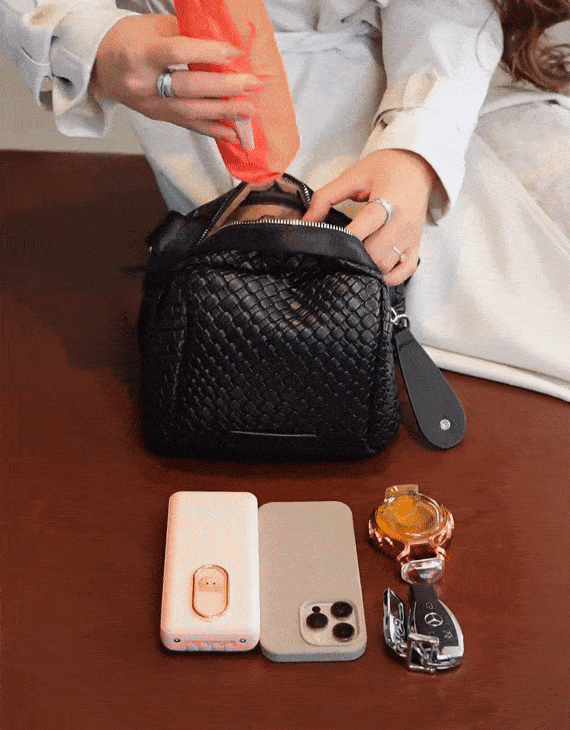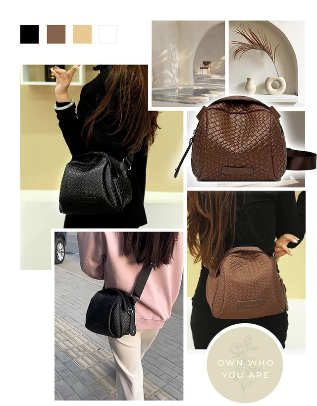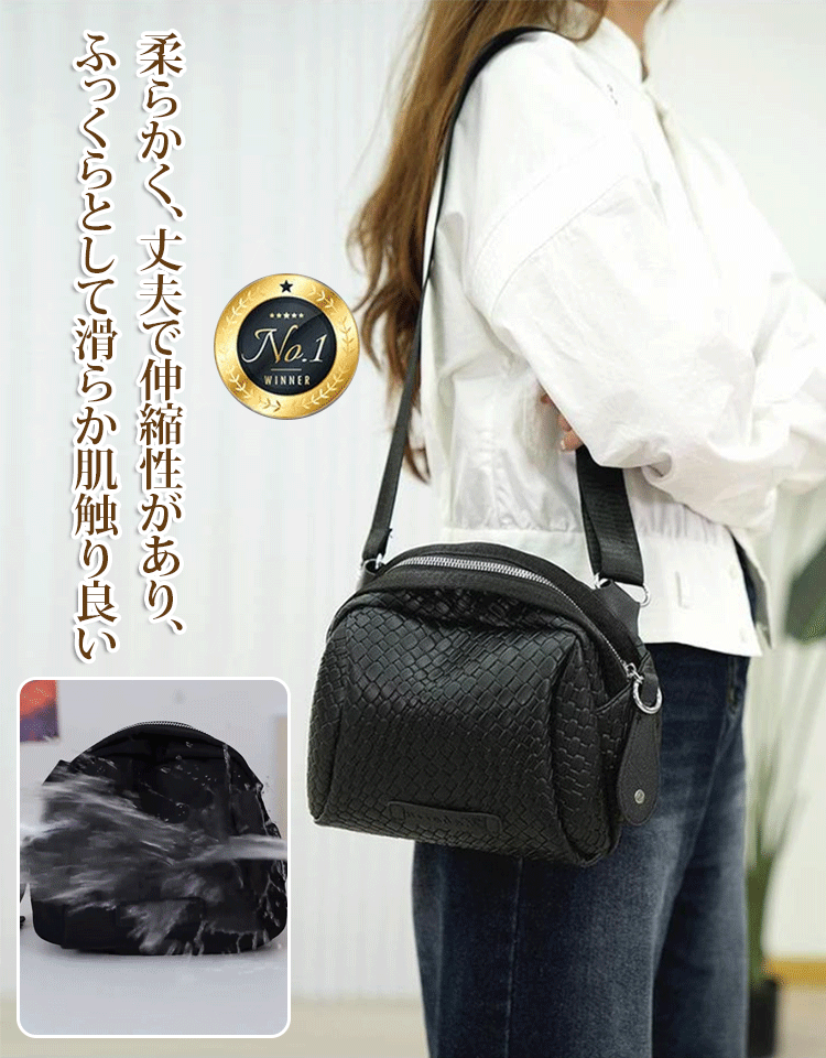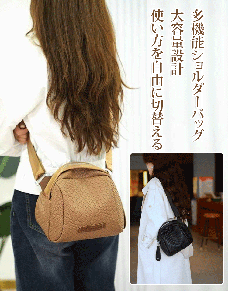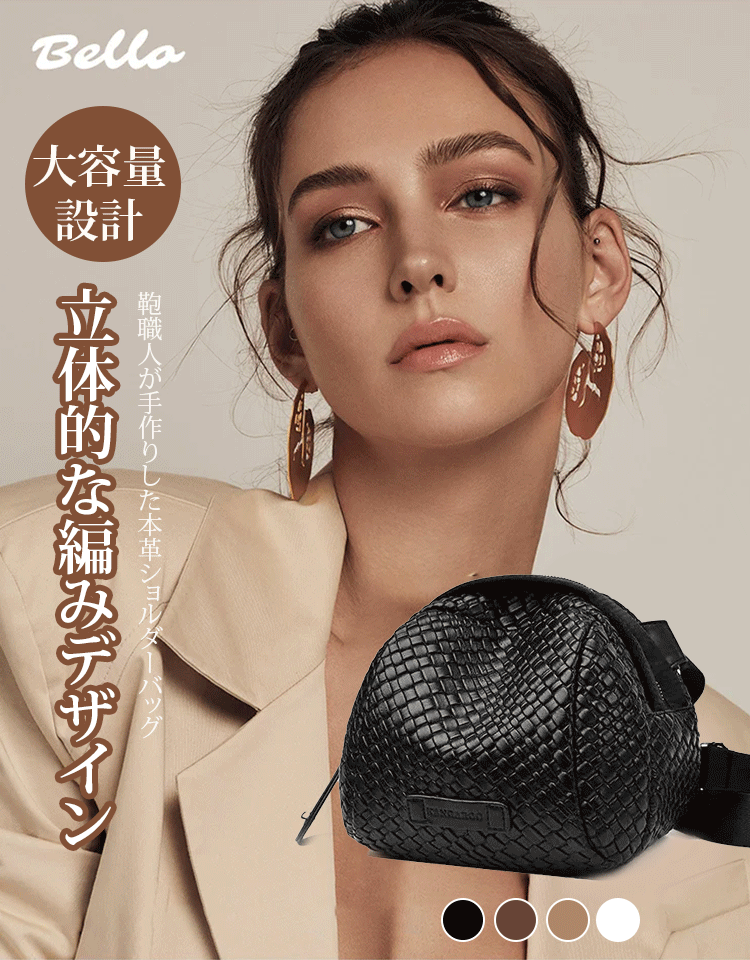 編み込み本革ショルダーバッグ
