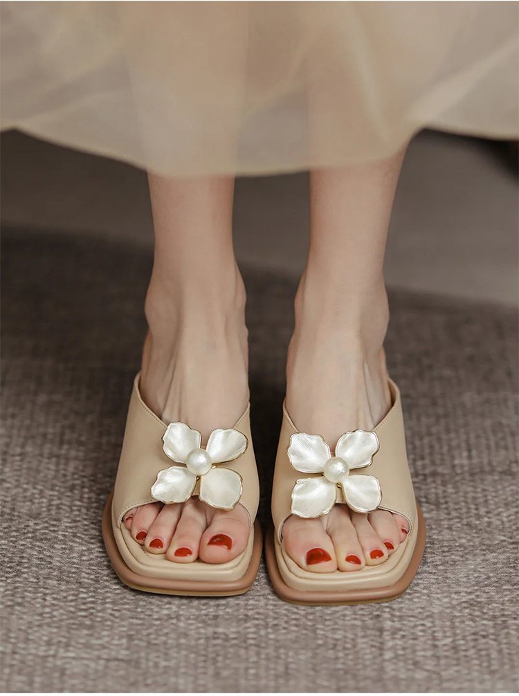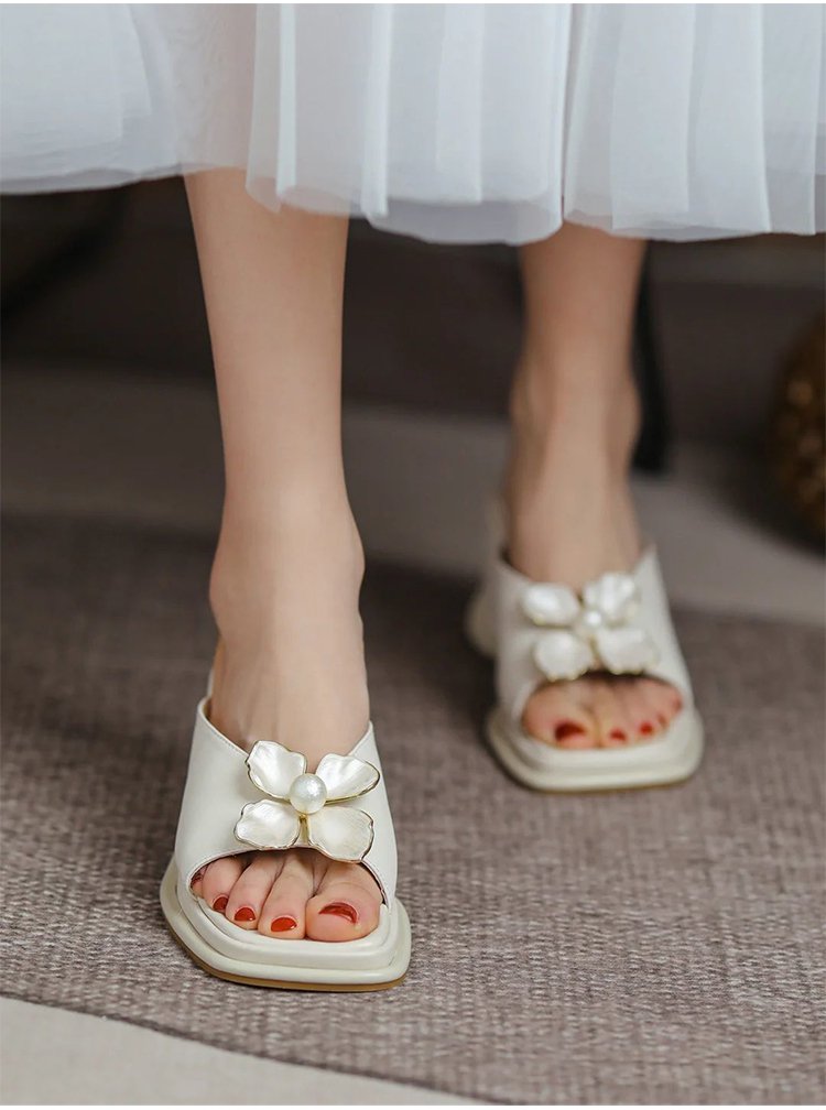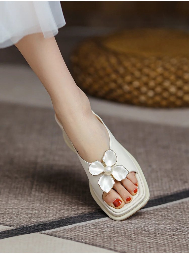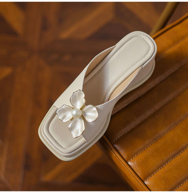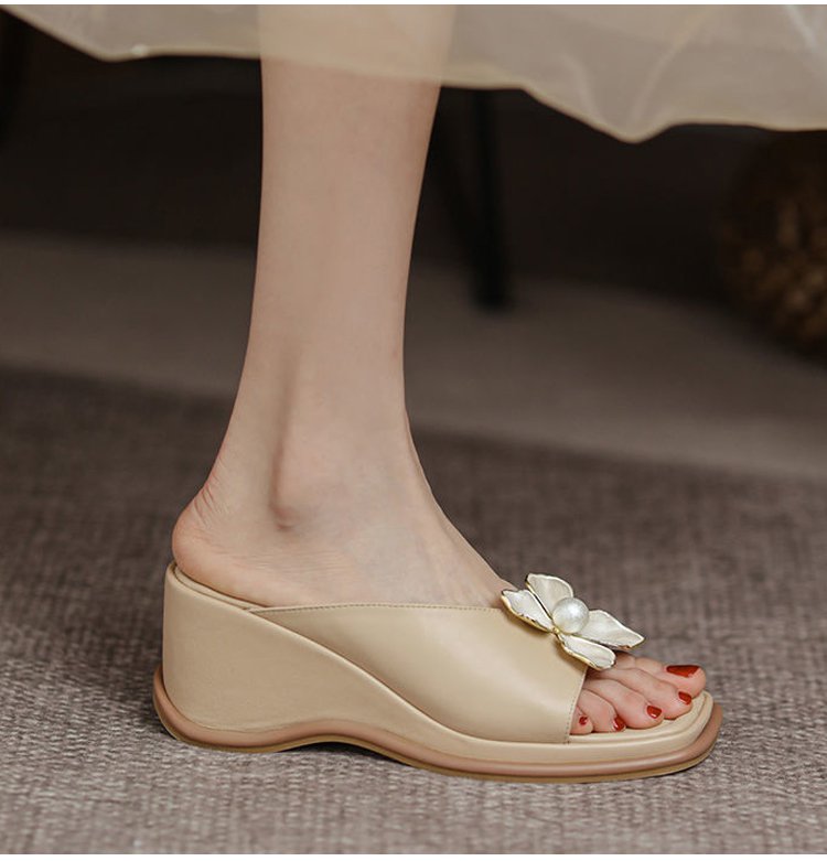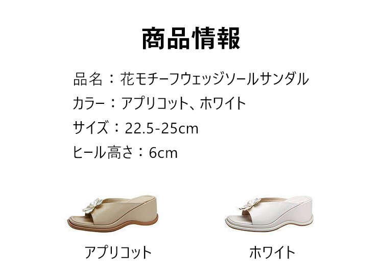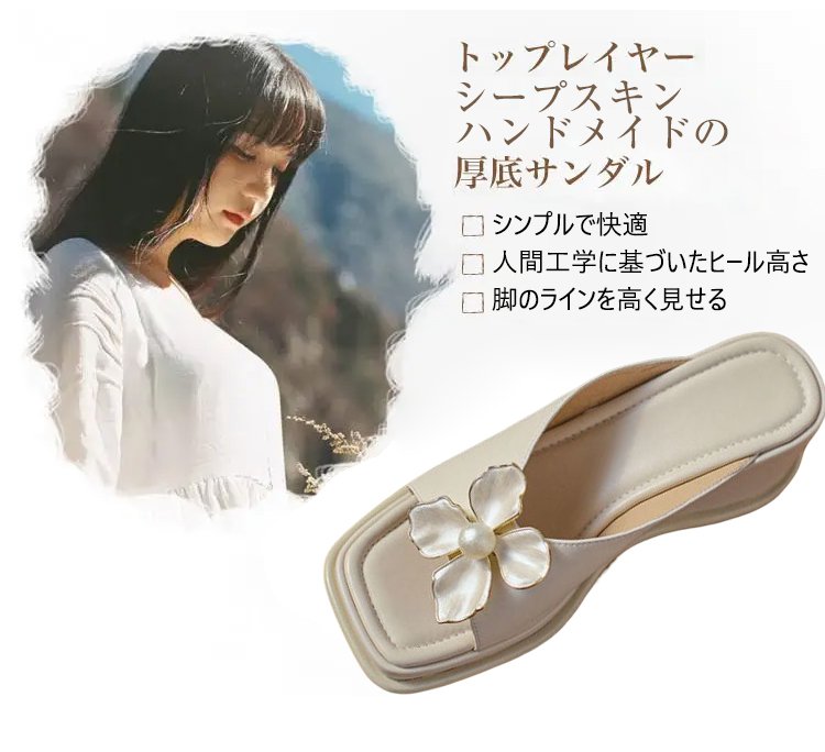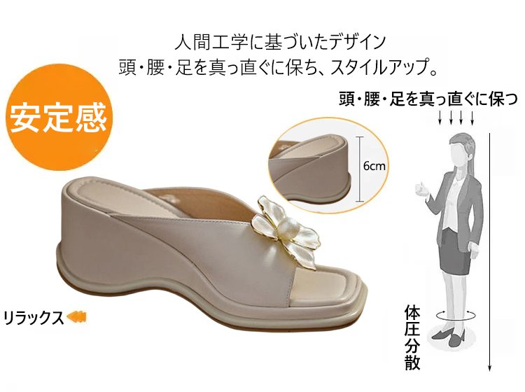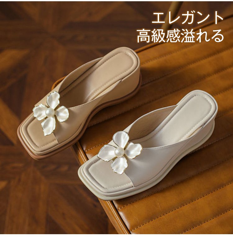 【花モチーフウェッジソールサンダル】シープスキン、アーチサポート、6cmアップ、通気、防滑