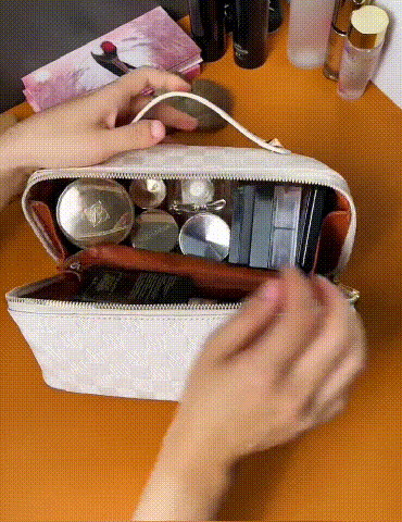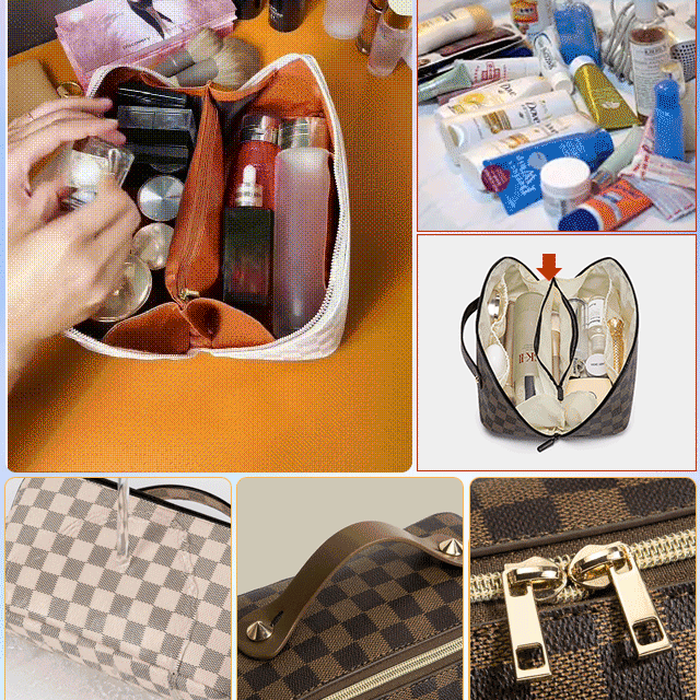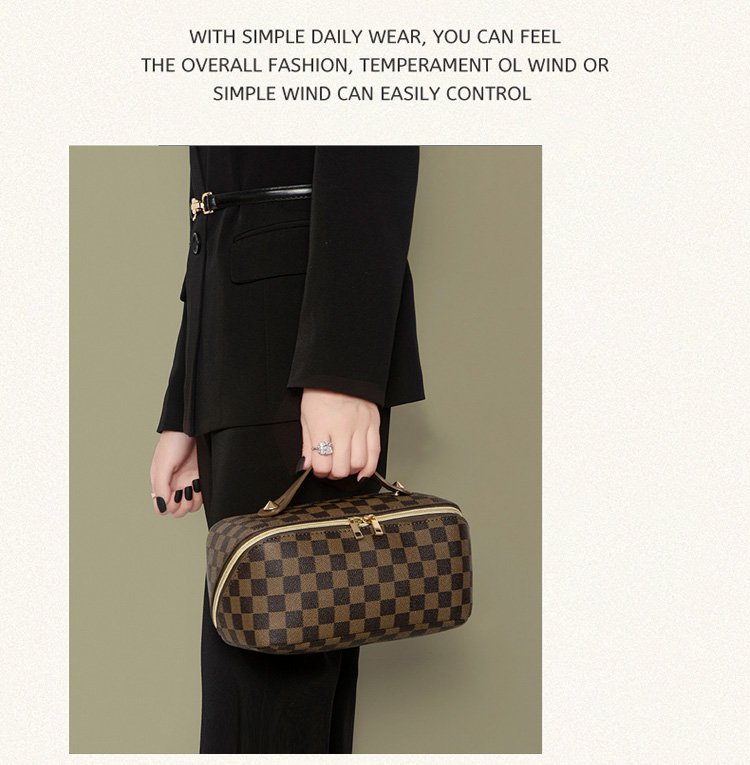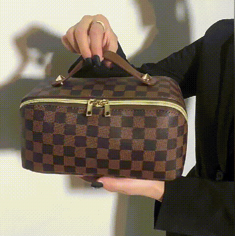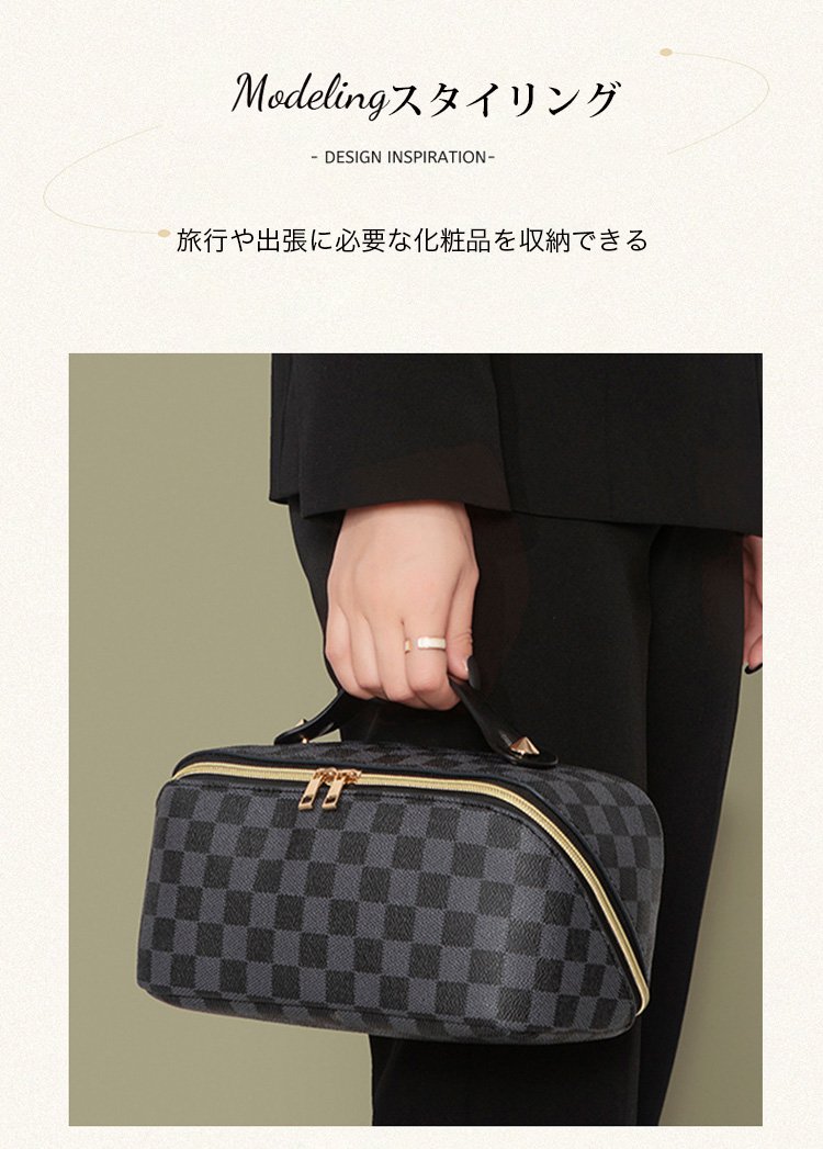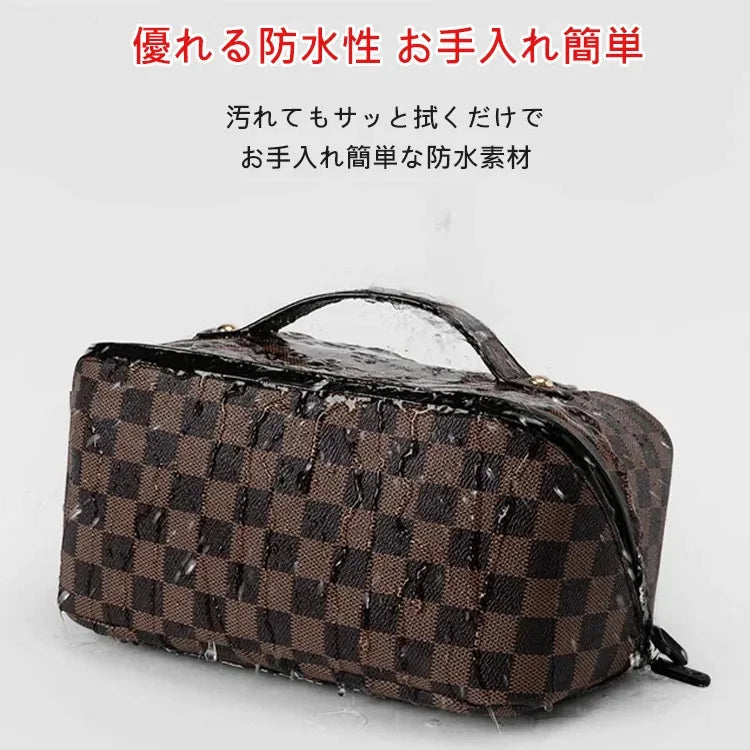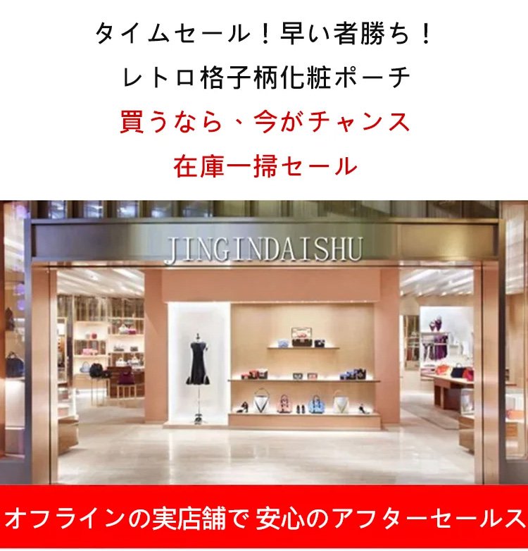 レトロ格子柄化粧ポーチ